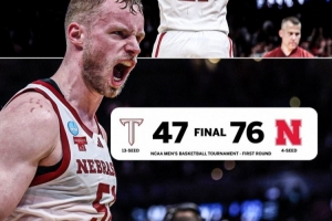 這是內布拉斯加大學在NCAA瘋三的首勝,此前他們八次首輪出局。