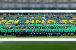 今天的踩場訓練之前,一線隊、俱樂部和中赫工體全體人員,第一次一起拍攝了一張大全家福。