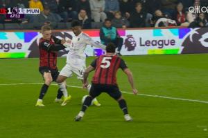 體育資訊03月21日訊 英超第31輪,曼聯客戰伯恩茅斯。67分鐘,阿瑪德禁區內倒地,裁判沒有表示。伯恩茅斯隨后發動反擊扳平比分。