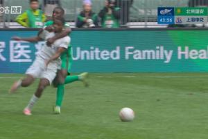 體育資訊03月21日訊 中超第3輪,北京國(guó)安vs上海申花。比賽第43分鐘,法比奧前場(chǎng)丟球后反搶,戰(zhàn)術(shù)犯規(guī)一把拽住馬納法,被馬寧出示黃牌警告。