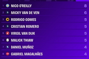 3、羅德里戈·戈麥斯、羅梅羅、范戴克、佳夫 5球