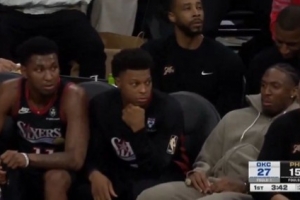GIF-麥凱恩飚三分,老隊友馬克西表情迷茫~