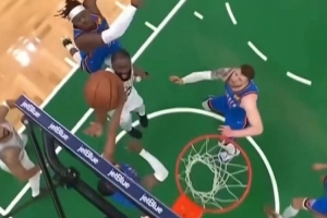 體育資訊3月27日訊 昨日綠軍119-109戰(zhàn)勝雷霆,賽后杰倫·布朗在直播時(shí)談到了本場(chǎng)多特對(duì)自己上籃的一次粗野防守。