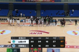 末節(jié)山西大學(xué)重新掌控局勢,他們高壓防守讓原本有所回暖的河南理工再度陷入啞火,后者6分鐘里僅得6分沒能繼續(xù)蠶食分差,山西大學(xué)這邊不斷制造殺傷罰球搶分,王昱翔和史悅龍相繼命中三分,山西大學(xué)送上一波21-6的攻勢徹底殺死比賽懸念。最終,山西大學(xué)97-53大勝河南理工收獲五連勝。