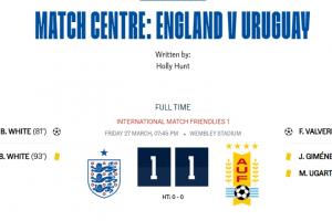 體育資訊03月28日訊 友誼賽英格蘭1-1戰平烏拉圭,烏加特出現2張黃牌沒被罰下爭議,但其實是轉播失誤。