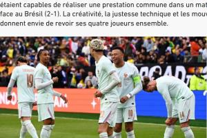 體育資訊03月28日訊 法國隊在友誼賽中2-1擊敗巴西隊,法媒《隊報》撰寫文章,分析了法國隊目前的前場四人組,即姆巴佩-埃基蒂克-奧利塞-登貝萊的組合,這四人創造力十足,并且優勢互補。文章內容如下: