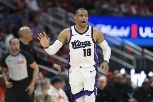 今天結束的NBA常規(guī)賽中,國王主場126-110戰(zhàn)勝公牛。此役,威斯布魯克出戰(zhàn)34分43秒,17中7,其中三分5中3,罰球6中6,得到23分11籃板12助攻1搶斷,沒有失誤,正負值+10。