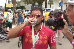 他在抵達(dá)終點后坦言:“前幾公里感覺還特別好。但最后那25公里…… 我實在是騎不動了。” 疲憊不堪的他,在高強度運動后犒勞了自己一瓶啤酒。