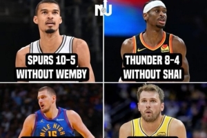 各MVP候選人缺席時球隊戰(zhàn)績:文班10-5 亞歷山大8-4 東契奇6-6