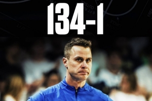 據統(tǒng)計,杜克大學成為NCAA瘋狂三月歷史中唯一一支半場領先15+卻輸球的1號種子,此前134勝1負。