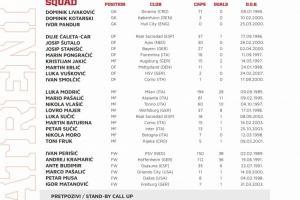 候補球員:布魯諾·佩特科維奇(科賈埃利體育)、奧爾西奇(帕福斯)、伊萬諾維奇(本菲卡)、布拉達里奇(維羅納)、巴什奇(拉齊奧)、貝爾喬(薩格勒布迪納摩)、科瓦切維奇(費倫茨瓦羅斯)、雷蒂卡(洛桑)、盧卡·斯托伊科維奇(薩格勒布迪納摩)