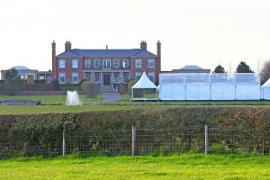 上周工人們在魯尼位于柴郡的價值2000萬英鎊的豪宅花園里搭建了這個大型結(jié)構(gòu),昨天還安裝了戶外取暖設(shè)備。