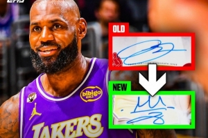 詹姆斯最新版本的簽名中加入了他的皇冠標志。這款全新的詹姆斯簽名將首次出現在即將發售的官方NBA球員卡上。