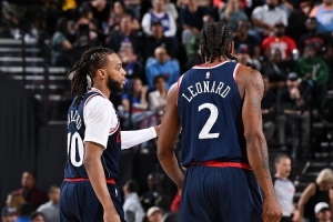 記者提到當(dāng)加蘭和倫納德同時(shí)在場(chǎng)時(shí),球隊(duì)84%的出手都集中在籃下或者三分線外,對(duì)此可以說:“我非常喜歡這個(gè)組合,加蘭能能夠打擋拆,突破到內(nèi)線并做出正確的選擇,科懷(倫納德)一旦上場(chǎng)就能吸引大量的防守注意力。”