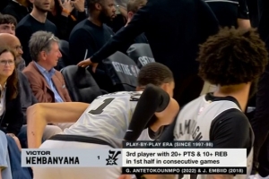 (統(tǒng)計(jì)自1997-1998賽季以來,恩比德2018年做到,字母哥2022年做到)