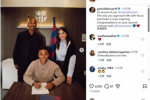 體育資訊4月2日訊 克魯伊維特更新社媒動態,曬出18歲兒子肖恩與巴薩B隊續約的照片。