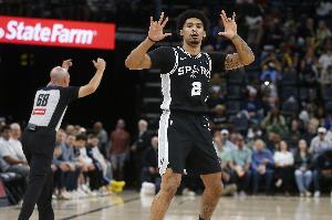 本場比賽,馬刺榜眼哈珀發揮不錯,尤其進攻端里突外投還能串聯,打得非常沉穩,他替補出戰25分鐘,12中8,三分3中2,罰球1中1,拿到19分2籃板5助攻1搶斷,正負值+11。