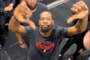 杜蘭特與球迷互倒豎大拇指比“踩”
