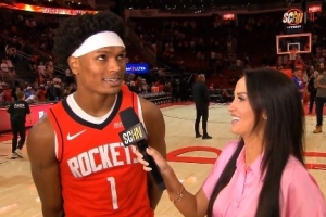 賽后阿門接受場邊采訪,談到大風(fēng)車暴扣隊(duì)友的反應(yīng),他說:“他們給我打了9分,他們說不夠精彩,所以我以后準(zhǔn)備扣一些更酷的。”
