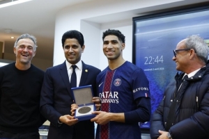 出場次數里程碑,巴黎圣日耳曼為阿什拉夫頒發200場紀念獎章