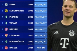 體育資訊4月4日訊 拜仁客戰弗賴堡的比賽正在進行當中,諾伊爾首發出戰,憑借本場比賽,他正式進入德甲聯賽“40歲俱樂部”。