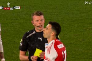 體育資訊04月05日訊 阿森納vs圣徒第93分鐘,道曼推進(jìn)時(shí)倒地,阿森納定位球,馬丁內(nèi)利著急了隨即推了裁判一下,這下馬丁內(nèi)利染黃!