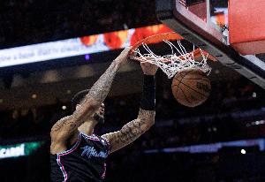 上半場,熱火中鋒韋爾攻防俱佳,出場18分鐘8投7中,三分3中2拿到16分9籃板6蓋帽,正負值+19。