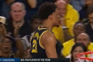 目前比賽上半場,密歇根大學(xué)主力也是熱門新秀倫德博格在對抗過程中傷到腳踝,雖然堅(jiān)持罰球最終還是自己走回更衣室。