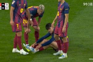 體育資訊4月5日訊 西甲第30輪比賽,巴薩客場(chǎng)2-1擊敗馬競(jìng)。貝爾納爾此役為巴薩替補(bǔ)出場(chǎng),但僅踢了20多分鐘就因傷離場(chǎng)。
