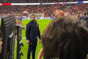 巴薩中場加維此役替補出場,賽后他將自己的球衣送給場邊的一位女球迷,后者歡呼雀躍。
