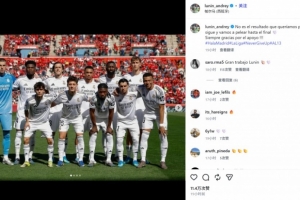 作為本場比賽的場上隊長,盧寧在賽后通過社媒曬出全隊合照并配文:“雖然結(jié)果不如人意,但這一切還沒有結(jié)束,我們會戰(zhàn)斗到最后一刻??感謝大家一直以來的支持!??!”