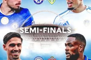 足總杯半決賽將于英國當?shù)貢r間4月25日和26日在中立場溫布利球場舉行,采用單回合制,90分鐘內(nèi)打平則進行30分鐘加時賽(上下半場各15分鐘),若仍未分勝負則通過點球大戰(zhàn)決出勝負。