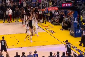 最后時刻,勇士未喊暫停,庫里持球推進到前場,擋拆后接變向回拉接撤步強拔三分球,無奈彈筐而出。梅爾頓空中補籃打進但是超時無效,全場比賽結束。
