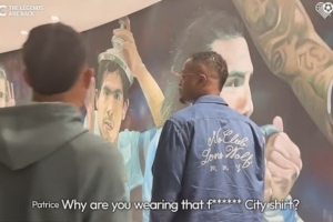 埃弗拉因?yàn)樘鼐S斯效力過(guò)曼城而取笑他,說(shuō)道:“你為什么要穿那件該死的曼城球衣?”這引起了其他兩人的歡笑。