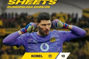 體育資訊4月6日訊 多特門將科貝爾本賽季聯賽完成13場零封,德甲門將零封場次最多。