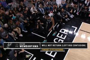 馬刺官方:文班亞馬左肋骨挫傷 下半場提前退賽
