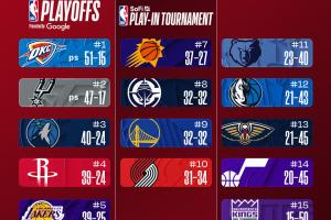 今日的NBA常規(guī)賽已全部結(jié)束,小吧帶你了解各隊(duì)排名變化: