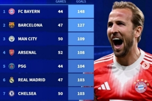 體育資訊4月8日訊 在歐冠淘汰賽首回合,拜仁2-1擊敗皇馬。德轉(zhuǎn)盤點了本賽季目前五大聯(lián)賽球隊在各項賽事總進球榜,其中拜仁遙遙領先,具體如下: