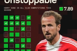 據(jù)Sofascore統(tǒng)計(jì),凱恩本賽季為拜仁出戰(zhàn)41場(chǎng)比賽,打進(jìn)49球,僅10場(chǎng)比賽未破門,從未連續(xù)3場(chǎng)比賽無(wú)進(jìn)球。