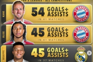 體育資訊4月8日訊 數(shù)據(jù)網(wǎng)站Score90盤點(diǎn)了本賽季五大聯(lián)賽球員在各項(xiàng)賽事總參與進(jìn)球榜(進(jìn)球+助攻),前五中拜仁占據(jù)三席,具體如下: