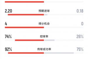 全場數據方面,巴黎射門18-3,射正6-0,控球率巴黎70%,掌控場面。
