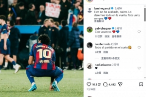 巴薩邊鋒亞馬爾社媒曬出賽后低落的照片,并寫道:“這一切還沒有結(jié)束,巴薩球迷們。我們將在次回合比賽中傾盡所有。永遠(yuǎn)團(tuán)結(jié)一心。”