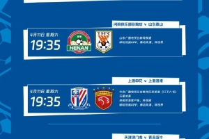 4月11日19:35,河南俱樂部彩陶坊vs山東泰山