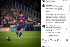 庫(kù)巴西賽后社媒表示,自己為這場(chǎng)失利承擔(dān)責(zé)任,巴薩傳奇后衛(wèi)皮克留言鼓勵(lì):“昂首挺胸,我的傳奇,次回合你們就把他們打爆。”