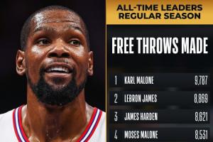 小帥再迎里程碑~杜蘭特罰球命中數超大O升歷史第6 前面一位是科比