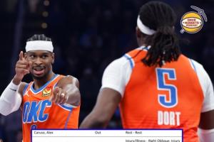 鏈接>>>雷霆明日戰掘金 亞歷山大等10人休戰 僅多特&麥凱恩等8人出戰