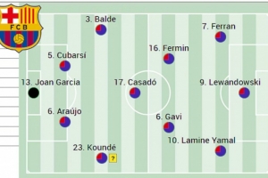 鋒線上最大的疑問(wèn)是亞馬爾是否會(huì)出場(chǎng),原則上費(fèi)蘭·托雷斯將首發(fā)出戰(zhàn)此役,萊萬(wàn)則可能繼續(xù)首發(fā),拉什福德可能會(huì)休息,如果弗里克能夠說(shuō)服亞馬爾輪休,魯尼·巴德吉將出任右邊鋒。