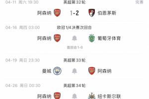 阿森納下周賽程:周四歐冠1/4決賽次回合戰(zhàn)葡體,周日客戰(zhàn)曼城!
