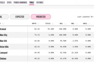 體育資訊04月11日訊 英超第32輪,阿森納爆冷1-2不敵伯恩茅斯,先賽2場領先9分。根據opta的奪冠概率預測,阿森納依舊有93.5%的概率奪冠,相較于上輪下降了4.1個百分點。
