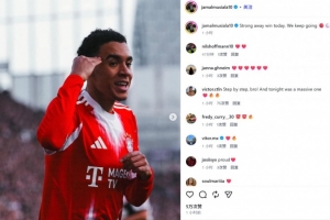 穆西亞拉也在賽后通過社媒曬出自己的比賽照,并配文:“今天在客場取得大勝,我們會繼續(xù)前進。”